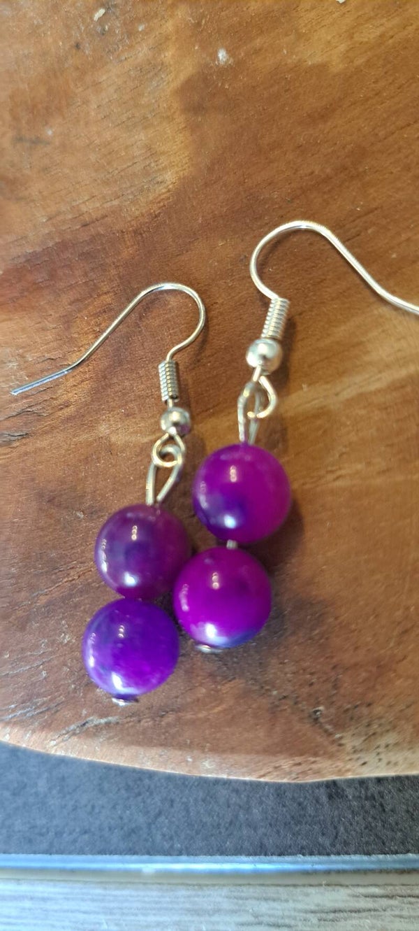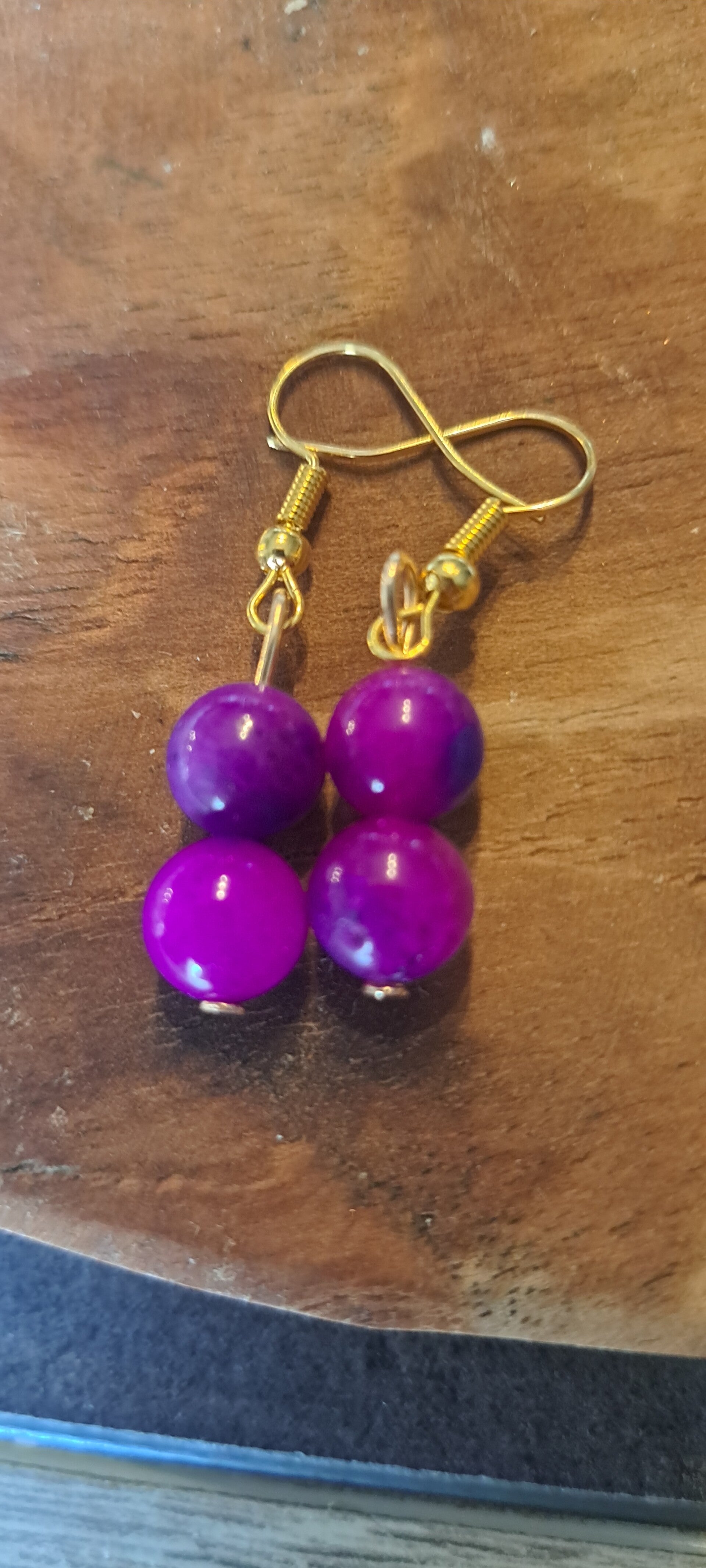 Cette paire en Agate teinté rose-violet éxiste en Doré ou en Argenté.