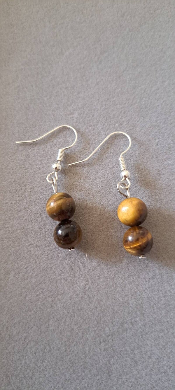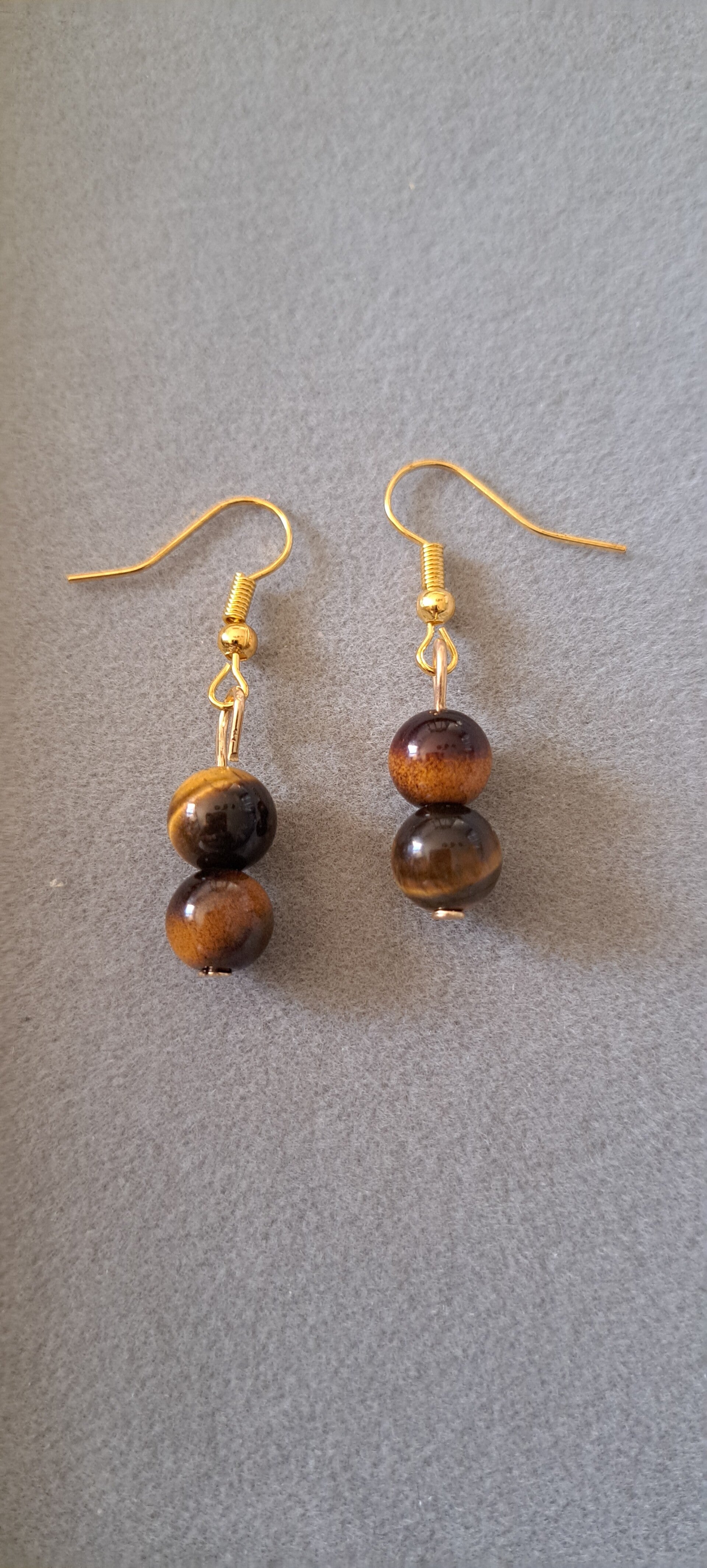 Paire de BO en Pierre d'Œil du Tigre Argenté ou Dorée