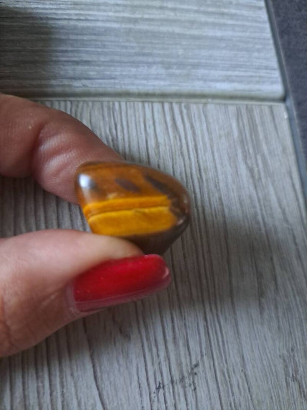 La pierre Oeil de Tigre tient son nom de ses couleurs chatoyantes qui font penser aux nuances de couleurs des yeux d'un tigre. Du brun foncé au jaune doré, la pierre revêt différentes nuances qui font d'elle une pierre tout à fait remarquable. La pierre Oeil de Tigre attire l’œil car son éclat de verre reflète toutes les variations de couleurs qui la composent. L’Oeil de Tigre appartient à la famille des quartz, il est composé de dioxyde de silicium et d’amosite, ce qui lui donne une texture fibreuse et dure, puisque la pierre se situe à 7 sur 10 de l’échelle de Mohs. Ses fibres donnent à la pierre l’effet d’optique striée qui la rend si unique.