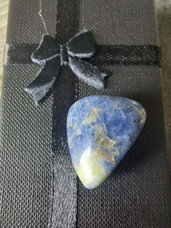 Fréquemment confondue avec le lapis lazuli, la sodalite est une pierre bleue qui présente de belles petites inclusions blanches, dorées ou orangées. Dotée d'une haute teneur en sodium, elle tient son nom des mots "soda" et "lithos" qui signifient littéralement "sodium" et "pierre".